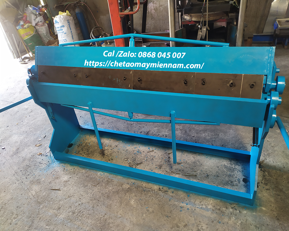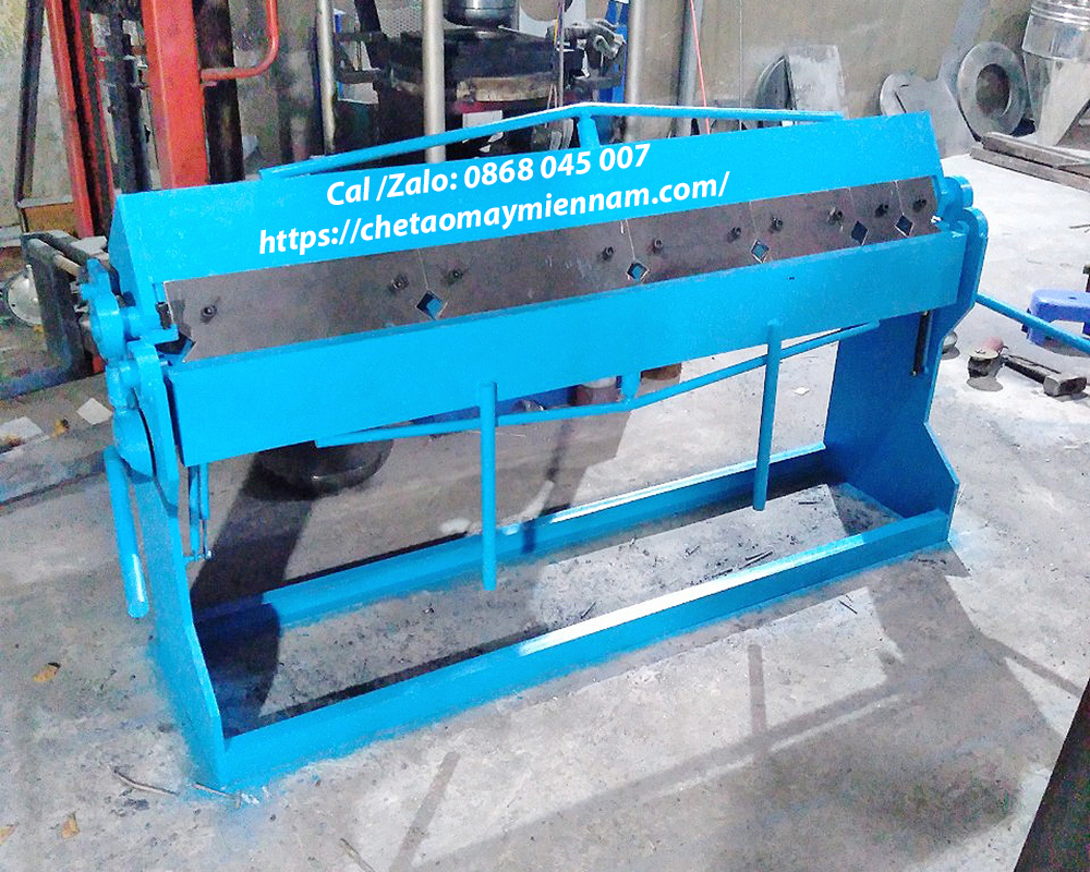 - MÁY BẺ TÔN - MÁY GẤP TÔN - MÁY BẺ TÔN BẰNG TAY - 0868 045 007 - CHẾ TẠO MÁY MIỀN NAM. Máy bẻ tôn bằng tay - máy gấp tôn bằng tay. Máy gấp tôn bằng tay - may gap ton - may be ton - máy bẻ tôn. Máy gấp tôn tay được sử dụng rộng rãi nhất và sử dụng trong sản xuất ống gió, gấp cạnh trong các tủ, bàn ghế inox, xe hủ tiếu, bánh mì.. Máy gấp tôn dùng trong việc gia công tôn tấm, gấp mép, góc với các loại tôn, hay tấm kim loại. Là loại máy gấp bằng tay nên sử dụng và vận hành khá đơn giản. Máy có kết cấu khung chắc chắn, các chi tiết được bố trí hợp lý cho người sử dụng sao cho tốn ít lực nhất. Mặt có các vít điều chỉnh cho phép gấp các loại tôn có chiều dài khác nhau. Cóc tăng cường, tăng độ bền máy và chất lượng đường gấp, Chi phí đầu tư ban đầu thấp.