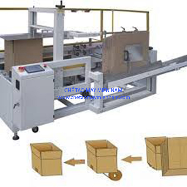 - Máy mở thùng carton CE302. Máy được thiết kế để mở thùng carton tự động. Quá trình tạo hình thùng carton, gập đáy và dán băng keo được thực hiện đồng thời. Sản phẩm sau khi được hoàn thành có chất lượng đồng đều, cứng cáp chắc chắn, đường dán băng keo thẳng, mối dán chắc, thùng không bị nhăn.